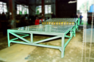 - Pneumatically operated Intermediate conveyor and pressing Table complete with endless belt.