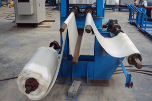 Slit fabric feed rollers ( shall be driven by the windup conveyor drive motor for speed synchronization).
